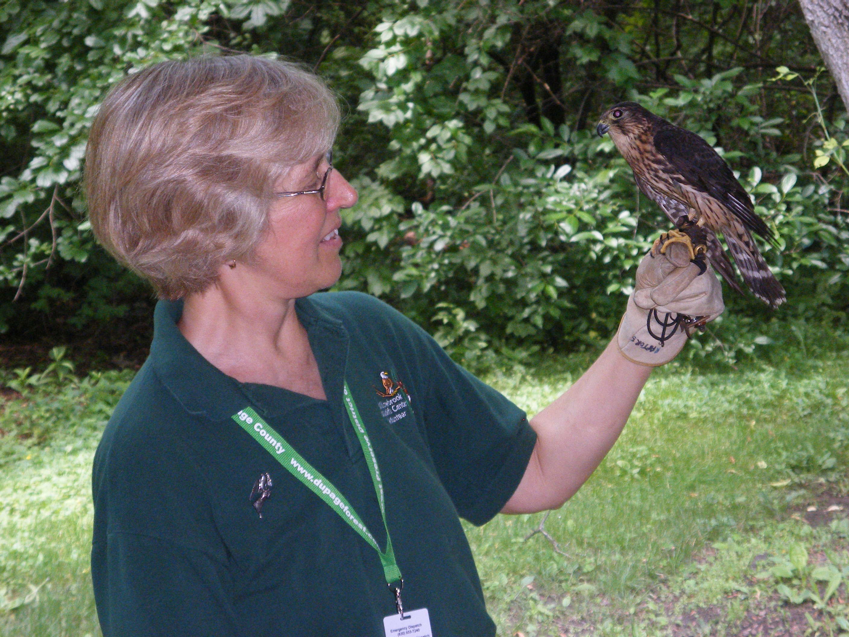 Admitted October 18, 2006 with a broken and dislocated left wing. She was found on a sidewalk in Elwood Park. Thought to be female because of her size.