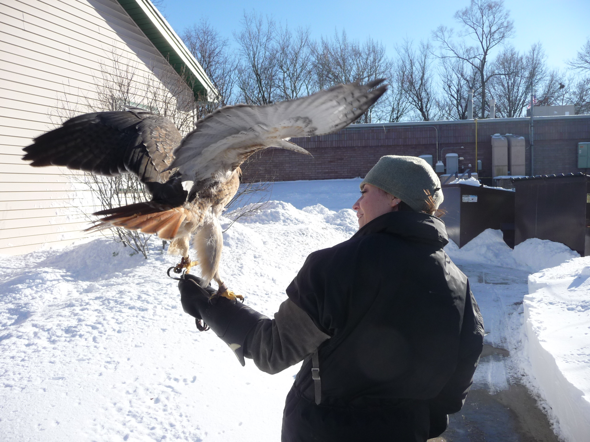 Nancy Mores took this photo (and the one below) of The Professor and Stephanie right after the blizzard in early February 2011. I like how his wings look. |