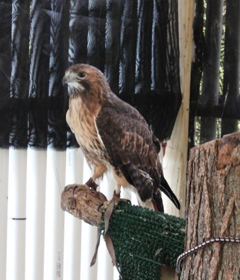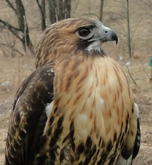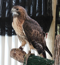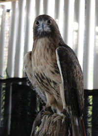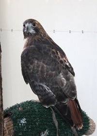 Henna is another word for "dark brown" and she is a dark morph hawk. Only after her arrival at Willowbrook was it determined she is a female. When she arrived her name was Xavier which means splendid... and she is a splendid looking bird.