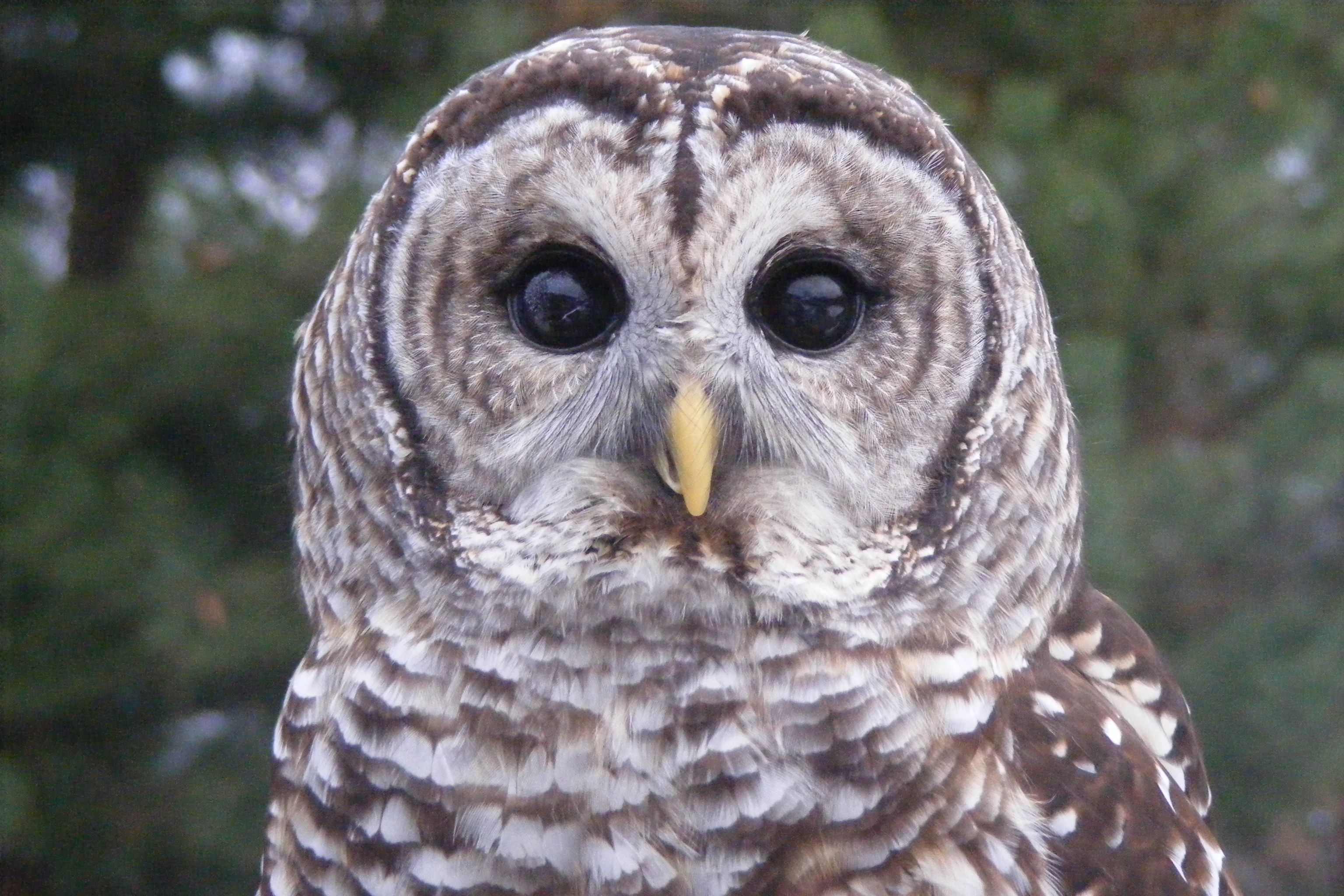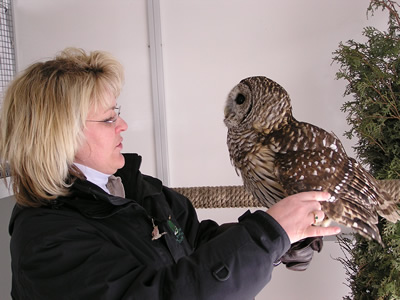 This past spring ('09), when the owls were hormonal - Juno flew at me, twice! It happened when I was cleaning her cage as an Animal Keeper. The first time I wasn't sure it was on purpose... the second time I was SURE it was on purpose. I often tell visitors how important it is to respect the power of these creatures - that their power is part of what makes them so wonderful. Having written that, if I'm honest, I have to say it's been a challenge to not let her intimidate me now. So far so good, but it's something I have to work at.