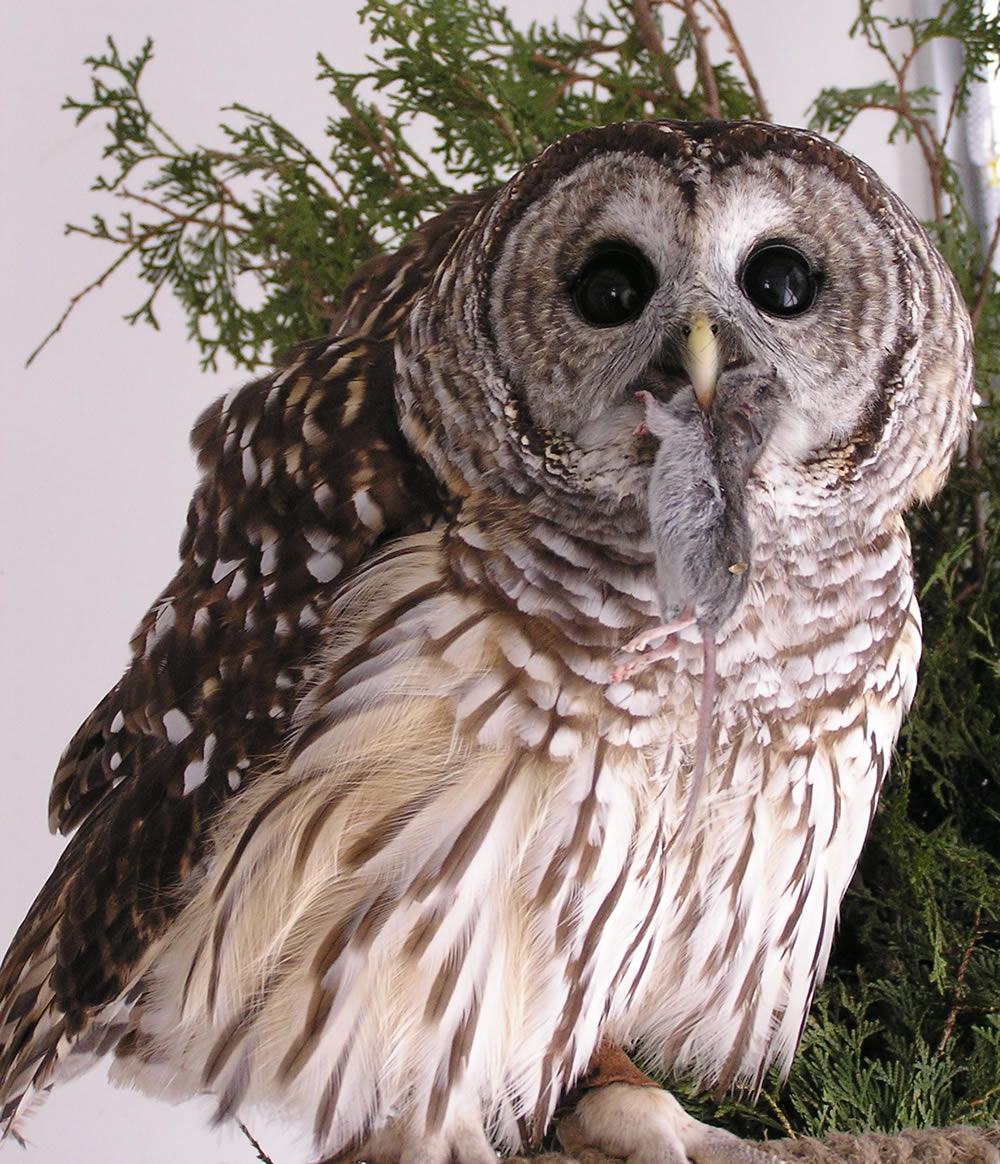 Arrived from Carolina Raptor Center on August 7, 2004. Probably hit by a car resulting in vision impairment (blind in right eye), beak fracture (misaligned) and a factured toe. She is fully-flighted. She was rehabilitated at the CRC and transferred to Willowbrook.