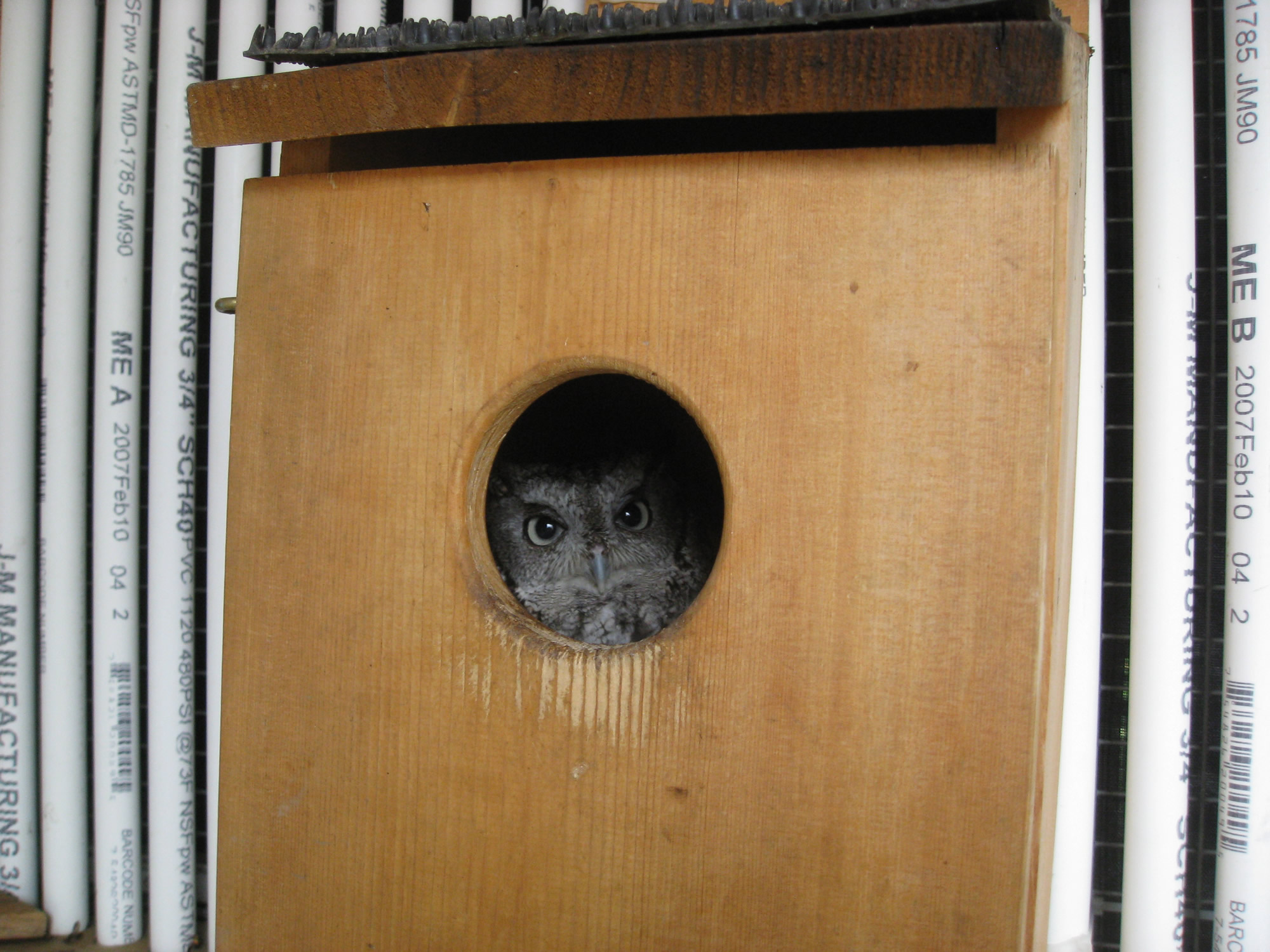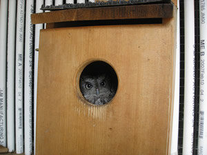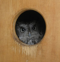 Another classic shot of Otis peeking out of her nest box. Thanks Ron! |