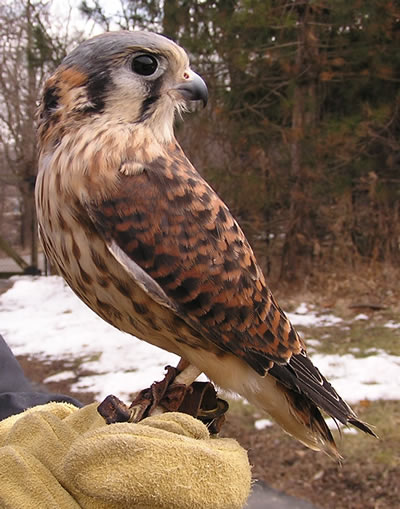 Origin of her name: LuAnn trained Skylar and named her Skylar because she was often looking up at the sky during training sessions. Species: Status as of November 1, 2015: Rescue Story: Brought in by Chicago Bird Collision Monitors in June of 2011 with injuries related to being caught in a rat trap. She is non-releasable because she's missing her left talons. Careful, she's a biter!